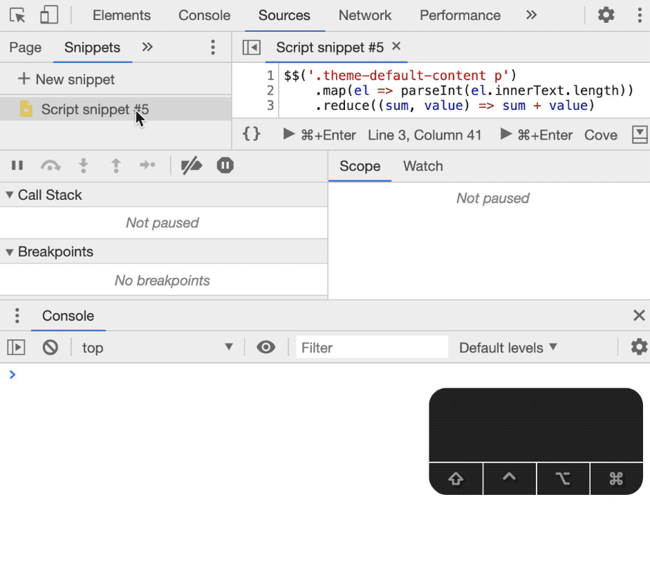 当我在 DevTools 中预设了一组很棒的代码块以后,甚至都不需要打开 Sources 来运行它。