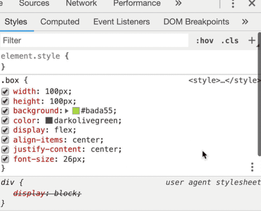 页面重新加载时会记住断点。当你设置了一个或多个断点的时候,可能都忘了它们所标记的位置了。怎么找它们呢?:在 Elements 视图中有视觉提示,