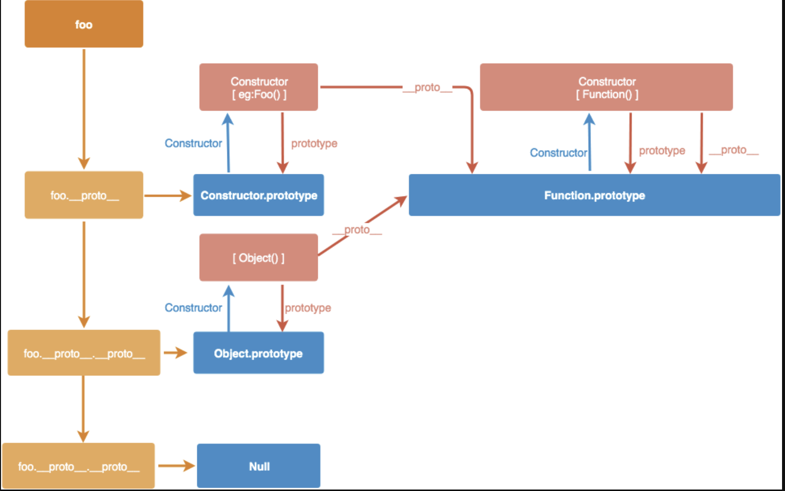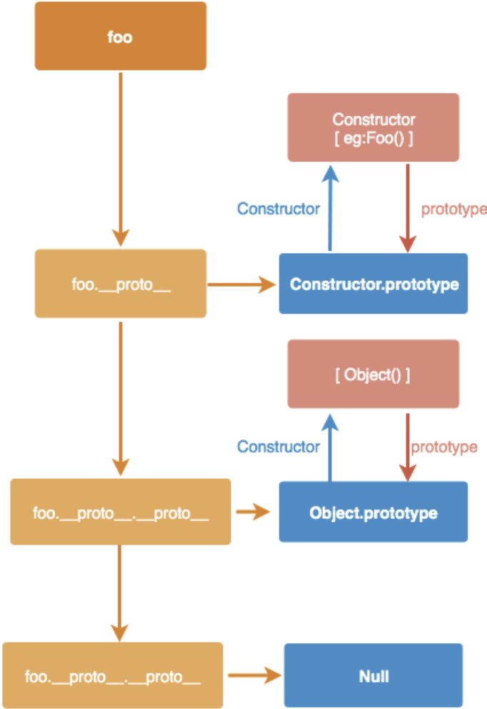 构造函数 Foo 可以通过 Foo.prototype 来访问原型,同时被构造出来的对象 foo 也可以通过 foo.__proto__ 来访问原型: