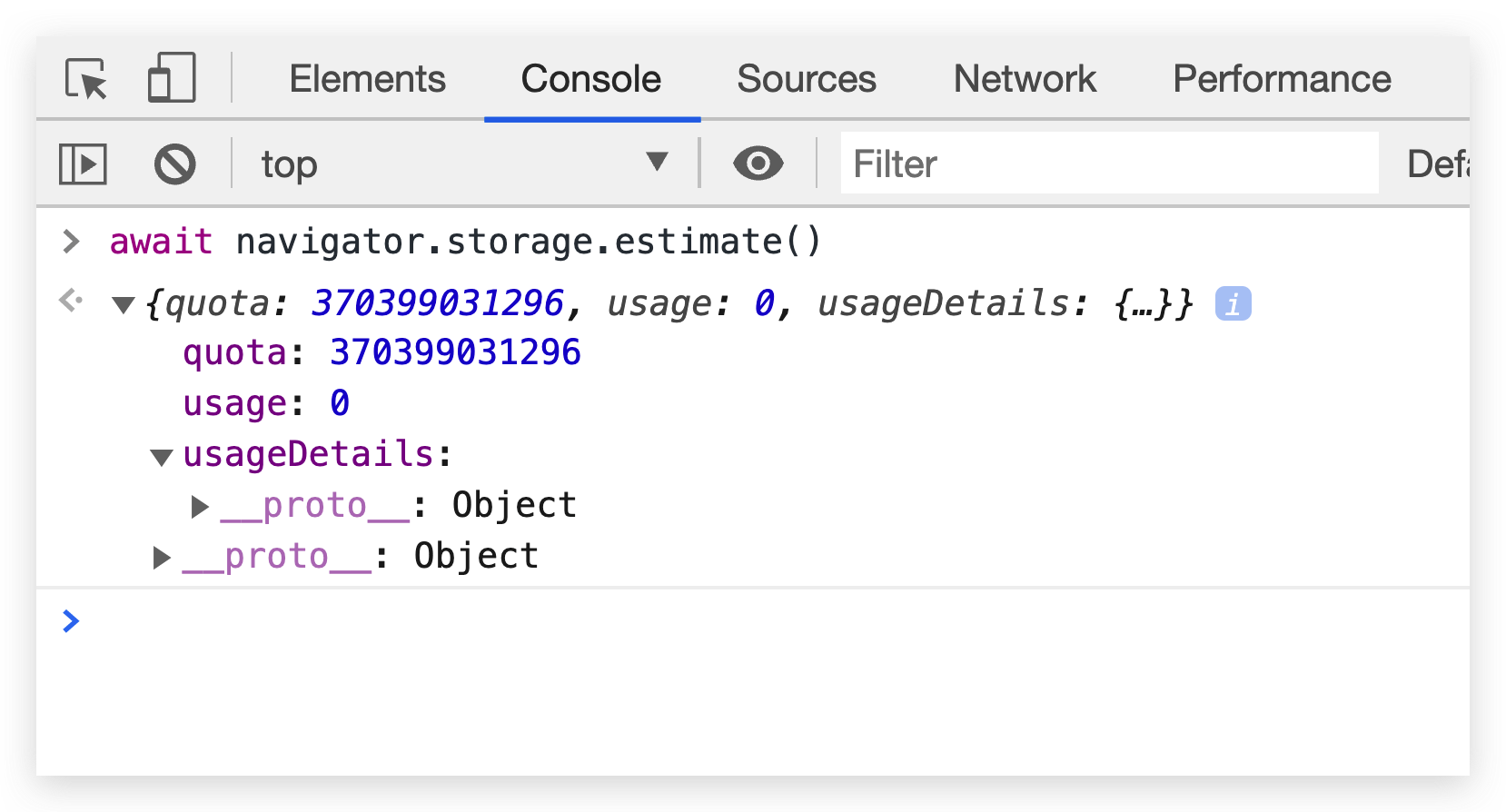 await navigator.storage.estimate()